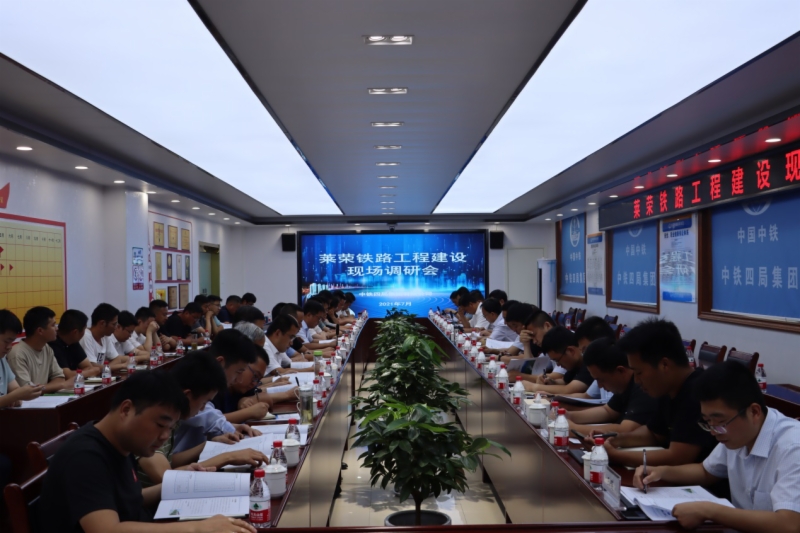 为进一步加快莱荣铁路建设, 7月18日至21日,集团副总经理、莱荣高铁公司党委书记、董事长杨俊泉、总经理刘杰民带领专项调研组,沿施工便道对全线建设情况进行调研,并在每个标段召开现场会。他强调“要围绕‘一个目标、两个同步、三个先行’的建设要求,以形象进度配备施工资源,坚持主体和附属工程同步,内业和外业工作同步。要包保盯控重点工程,搞好文明施工,做好环水保工作,高标准、高效率、高质量推进莱荣铁路工程建设。”各施工单位就项目建设进展、施工组织安排、施工资源配置、大干120天劳动竞赛完成情况、下半年重点工作安排情况进行了汇报。