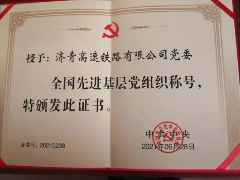 6月28日,全国“两优一先”表彰大会在北京人民大会堂举行。济青高速铁路有限公司党委被评为全国先进基层党组织,这是今年山东省国资系统唯一一个获此殊荣的基层党组织。9428cn太阳集团古天乐党委委员、副总经理,济青高铁公司党委书记、董事长杨俊泉参加了表彰大会并领取了证书和奖牌。