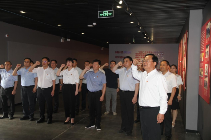 在讲解员的指引下,大家深入学习了山东早期党组织发展与斗争史、“四五”烈士生平和革命事迹。在一张张斑驳的老照片和一件件饱经风霜的烈士遗物面前,大家仿佛回到了那个枪林弹雨、血雨腥风的峥嵘岁月,被“四五”烈士追求真理、献身革命、坚守信仰、不屈不挠的革命精神深深感动。全体人员面对党旗,重温入党誓词,表达了对党的坚定信念和真挚情感。