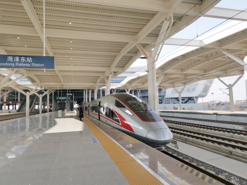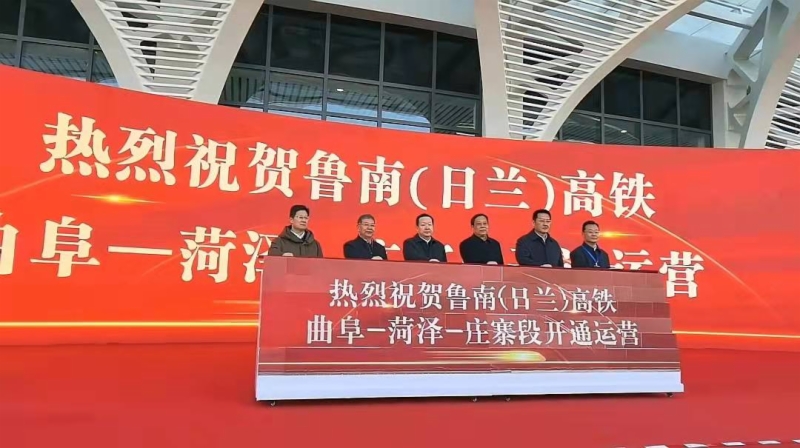 2021年12月26日11时46分,随着G4018次列车从菏泽东站驶出,标志着鲁南高铁曲阜至菏泽至庄寨段正式开通运营,结束了菏泽市不通高铁的历史,同时也标志着鲁南高铁山东段(日照西到庄寨站)全线开通运营。山东省高铁运营里程达到2300多公里,稳居全国前三。