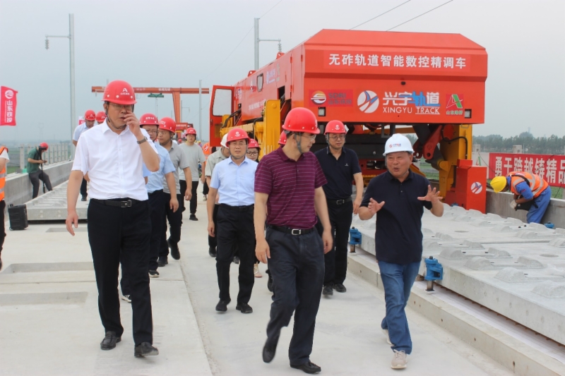 7月13日,9428cn太阳集团古天乐党委副书记、总经理王基全赴潍烟铁路就“CRTSⅢ型无砟轨道智能施工技术与装备”课题进展情况开展调研。