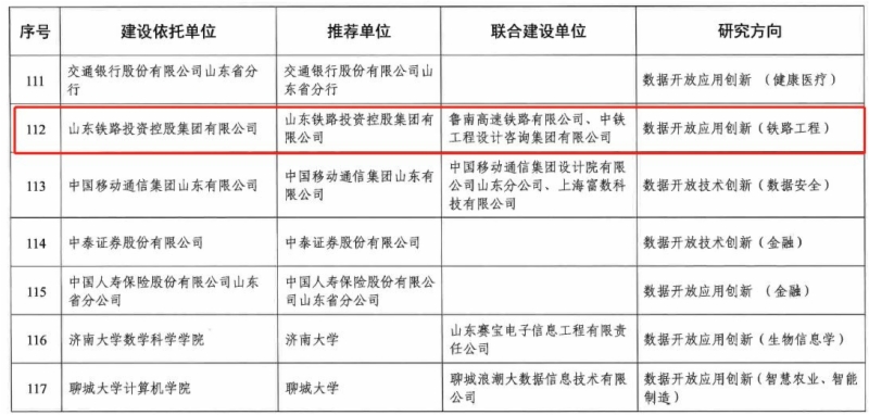 近日,山东省大数据局公布了《山东省数据开放创新应用实验室(第三批)名单》,集团申报的“铁路工程大数据研究实验室”成功获批。
