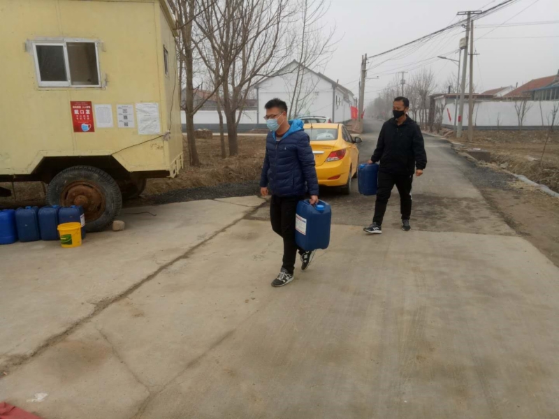 “抗击疫情物资保障是关键。”张敏到岗后,发现帮扶村口罩、消毒液等防护物资紧缺,有些值班人员一次性口罩反复使用。于是张敏与队员前往东营东城、垦利以及广饶等多个药店购买,但均无现货。最后,终于联系到鲁西南一家供应商购买3M口罩500只,通过顺丰快递发往永安镇,及时送到帮扶村村民手中。在前期协调的外地医用酒精无法及时到位的情况下,又积极联系东营当地一家药物企业免费提供200斤医用酒精,发放到帮扶村进行消毒。