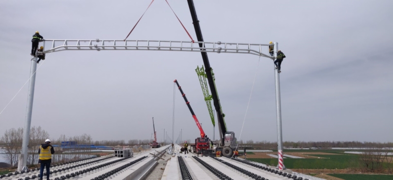 3月27日上午10点26分,潍莱高铁全线第一根接触网硬横梁在王伯村线路所成功安装完成。硬横梁长17.549米,架设在潍莱高铁DK9+096.19-DK9+236.78间接触网225至226号基础上。