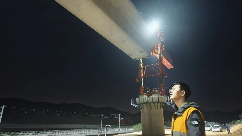 为确保运架梁施工有序推进,全线自2021年6月26日启动架梁以来,潍烟高铁公司积极协调、优质服务,多次组织各参建单位召开施工方案审查会、专家评审会,精心研究施工方案,确保方案高效可行;强化现场安全质量管理,努力创造良好的外部环境,为运架梁任务保驾护航;运用科技手段,通过增添智能设备,改造升级架桥机智能化监控系统,加装架桥机动平衡压力传感器等措施,确保架桥机安全受控。