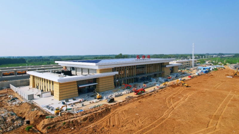 济郑高铁山东段线路全长170公里,设计时速350公里,全线共设济南、济南西、长清、茌平南、聊城西和莘县6座车站,主要工程范围包括:济南枢纽相关工程,改造既有接轨站济南西站和济南站2座车站,新建长清、茌平南、聊城西、莘县4座车站,以及济南-济南西-山东河南省界上下行正线工程。进入联调联试阶段后,4座新建车站全新亮相,站房主体结构已全部完成,目前正在进行装饰装修施工。