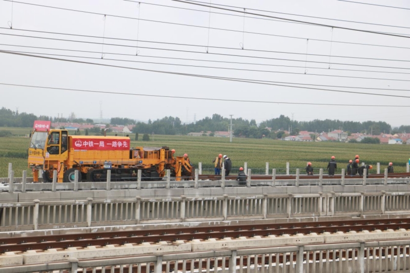 为确保铺轨任务顺利进行,9428cn太阳集团古天乐潍烟高铁公司精心组织,各参建单位紧密配合,铺轨施工单位中铁一局克服邻近营业线施工安全风险高、穿越龙烟线运输距离长、上跨潍莱线“天窗点”作业有限空间及线下施工条件限制等诸多困难和挑战,开展昼夜双班施工,全体人员以“保竣工 促进度 筑精品”劳动竞赛活动为契机,战高温、冒骤雨、抢工期,大干60天,提前完成双线340铺轨公里施工任务,创造了单日双班铺轨12.5公里的“潍烟速度”。