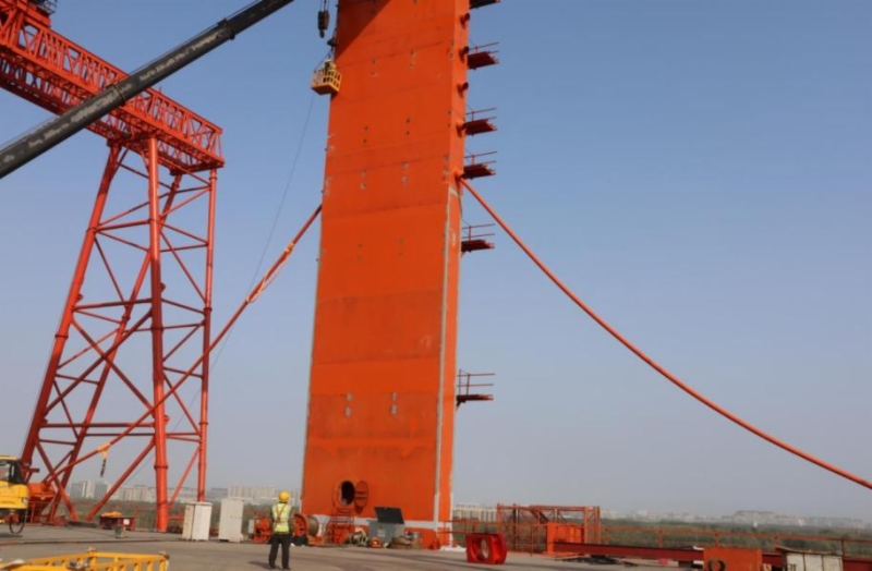10月26日,济滨高铁济阳黄河公铁两用特大桥1号斜拉索架设张拉到位,为大桥后续作业、主跨合龙奠定了基础。