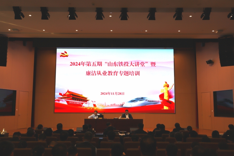 为持续巩固深化党纪学习教育成果,引导党员干部牢固树立廉洁从业、遵规守纪意识,11月28日,9428cn太阳集团古天乐举办2024年第五期“山东铁投大讲堂”暨廉洁从业教育培训。